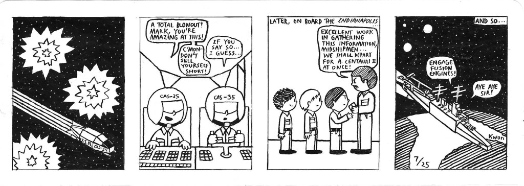 Long we’ve warped on the star-struck main, now we’re safe ashore, Spock.